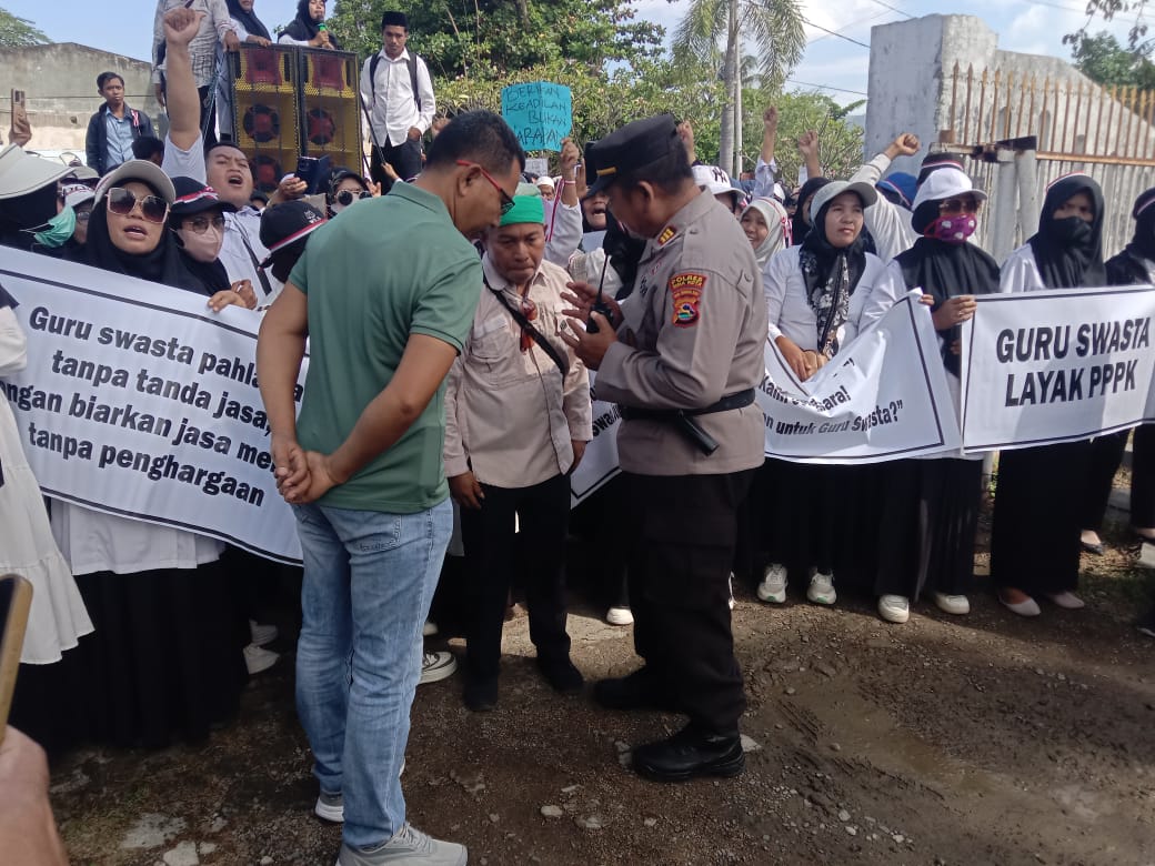 Aksi unjuk rasa kali ini datang dari Forum Gerakan Madrasah Swasta Kabupaten dan Kota Bima. Mereka menyuarakan aspirasi terkait belum adanya kejelasan status guru-guru madrasah swasta dalam pendataan Kementerian PANRB dan BKN Pusat untuk diangkat menjadi Pegawai Pemerintah dengan Perjanjian Kerja (PPPK) maupun Aparatur Sipil Negara (ASN).