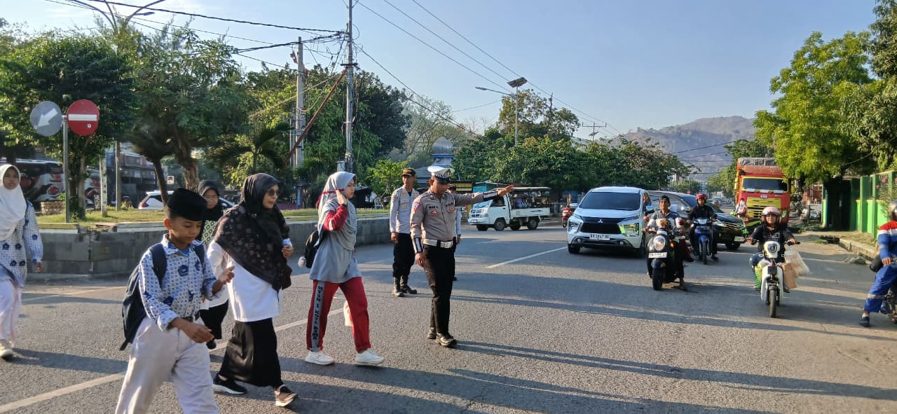 Selain melakukan pengaturan di titik rawan macet, personel juga memberikan pelayanan kepada masyarakat, membantu menyeberangkan anak sekolah, dan memastikan aktivitas masyarakat di pagi hari berlangsung aman serta tertib.