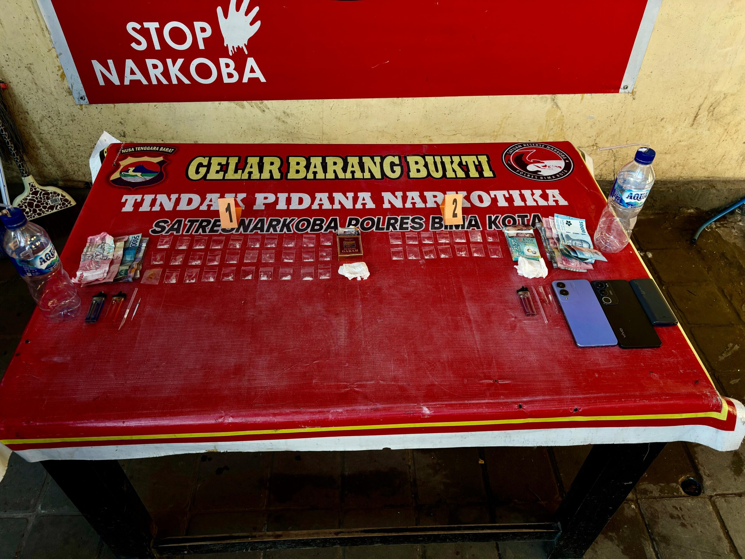 Kapolres Bima Kota AKBP Didik Putra Kuncoro, S.I.K., M.Si., melalui Kasat Resnarkoba AKP Malaungi, S.H., membenarkan penangkapan tersebut. Menurutnya, dari hasil penggeledahan pertama di rumah NU di Desa Mawu, petugas berhasil menemukan 29 poket sabu dengan berat bruto 5,87 gram.